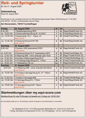 Wir freuen uns auf ein schönes und erfolgreiches Turnierwochenende mit Ihnen, egal ob als Reiter oder als Zuschauer!
